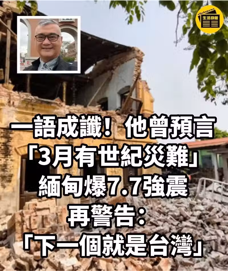 一語成讖! 他曾預言「3月有世紀災難」緬甸爆7.7強震,再警告「下一個就是台灣」