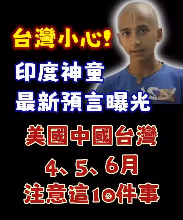 印度神童最新預言曝光,警告美國、中國、台灣小心4、5、6月。