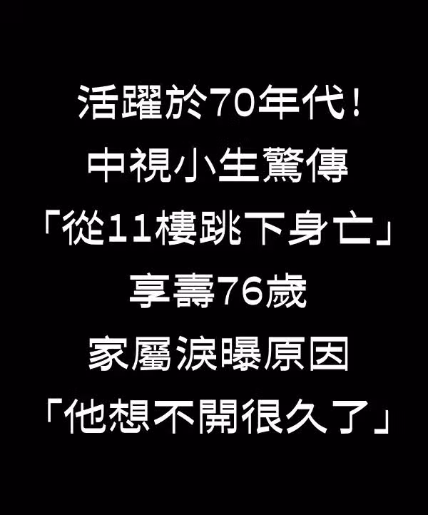 活躍於70年代!中視小生驚傳「從11樓跳下身亡」享壽75歲 家屬淚曝原因「他想不開很久了」