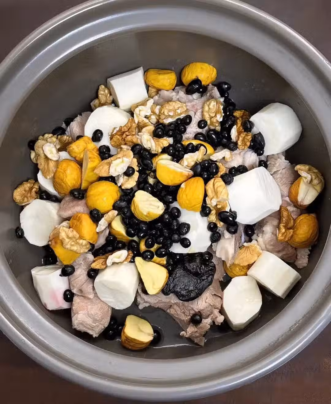 生活的壓力大,過度勞累、過度思慮 熬夜,久病、不良飲食習慣… 這些都在不知不覺中消耗著我們的腎精力。 . 不要覺得男人才會腎虛,女生也會 掉發、白髮多、容易怕冷 夜尿多、尿頻、腰酸痛、總是沒精神 常感覺身體虛虛、人困困的累累的,這碗【黃精黑豆湯】可以多多安排~ ▪材料: 黃精、黑豆、山藥、核桃、板栗、肉。核桃是補.腎陽,山藥入五臟,板栗是古人眼裡的腎之果,補.腎氣槓槓的,黑豆尤其入腎補.腎,黃精歸脾、肺、腎經。黃精:味甘、補氣養陰、健脾潤肺、益腎填精、黑豆:補腎益陰、健脾利濕、活血解毒,適合腎虛腰痛、水腫尿少者,山藥:補脾養胃、生津益肺、補腎澀精,適合脾虛食少。核桃:補腎固精、溫肺定喘、潤腸通便、板栗:強筋、健脾養胃、活血止血、可增強體力、肉:補充蛋白質及微量元素,增強湯品鮮味。別看這個湯黑乎乎的,味道清甜可口 一點也不油膩,回味無窮啊!
