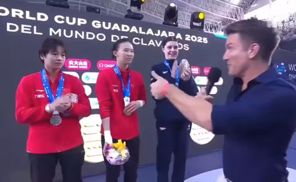 笑噴!全紅嬋頒獎被老外採訪扭頭求助陳芋汐,中文回答:謝謝大家!