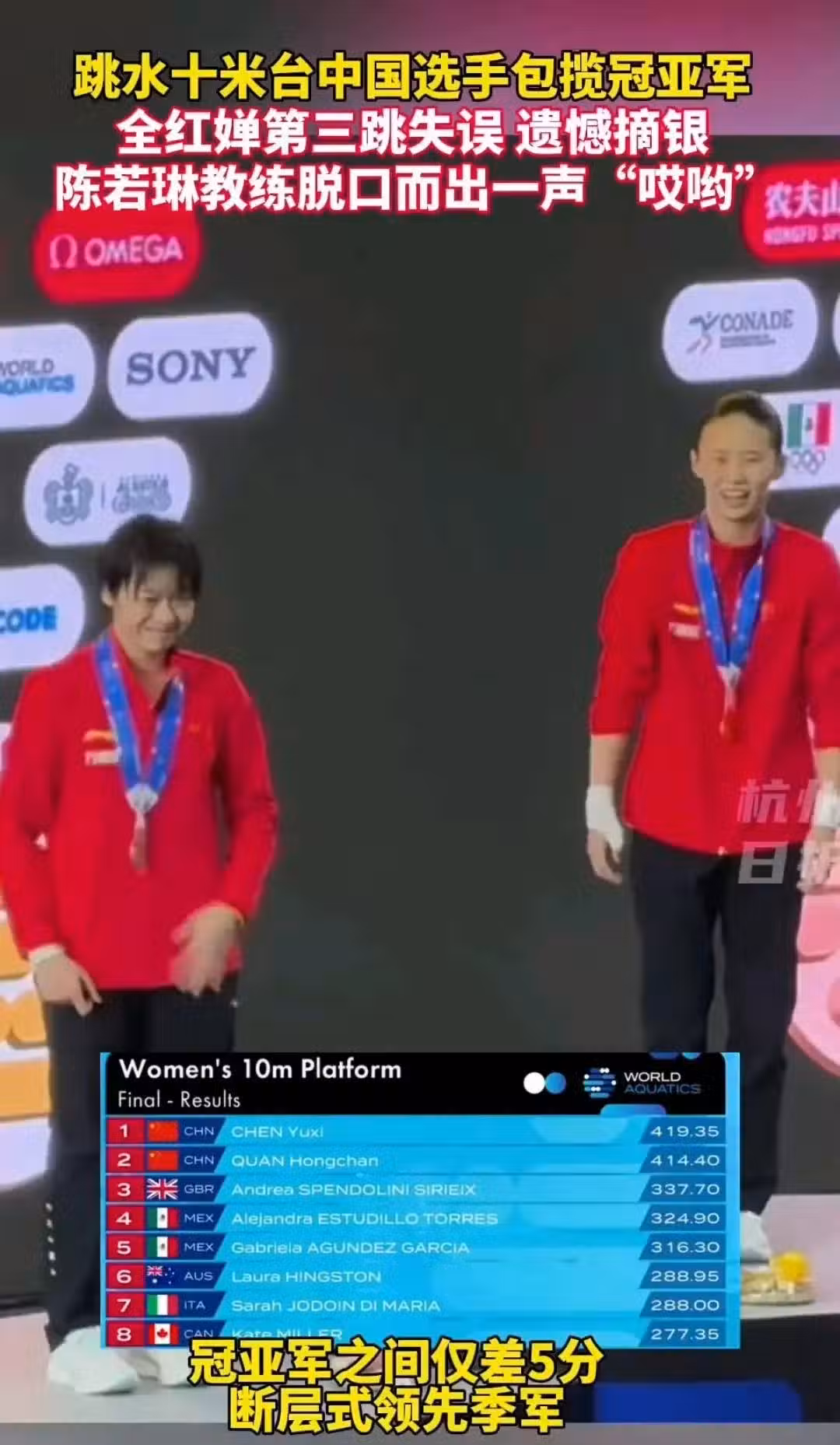 網爆:全紅嬋失誤陳若琳脫口而出「哎呦」,火了