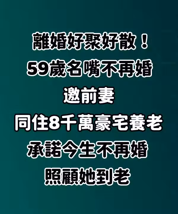 離婚好聚好散!59歲名嘴不再婚「邀前妻同住8千萬豪宅養老」承諾今生不再婚,照顧她到老...
