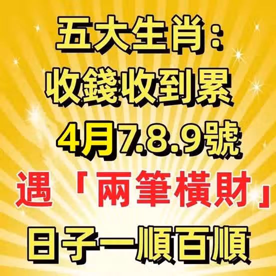 收錢收到累!4月7.8.9號遇「兩筆橫財」日子一順百順的生肖
