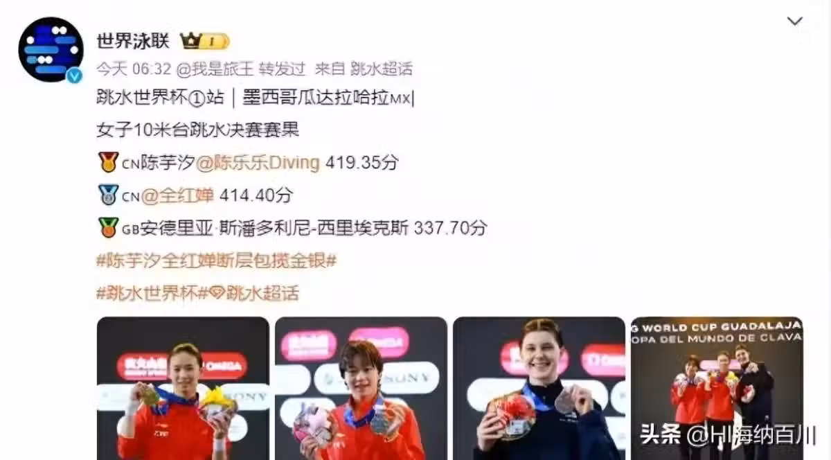 在剛剛落幕的跳水世界盃墨西哥站上,那可真是熱鬧非凡,特別是女子單人十米跳台決賽,簡直是場視覺盛宴。俗話說得好,「文無第一,武無第二」,但在跳水這項目上,咱們中國隊的姑娘們可是用實力證明了,咱們不僅能拿第一,還能包攬前兩名!