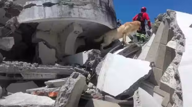 這隻搜救犬在地震災區「歇盡全力搜救」救出7位生還者後,吐舌離開人世!