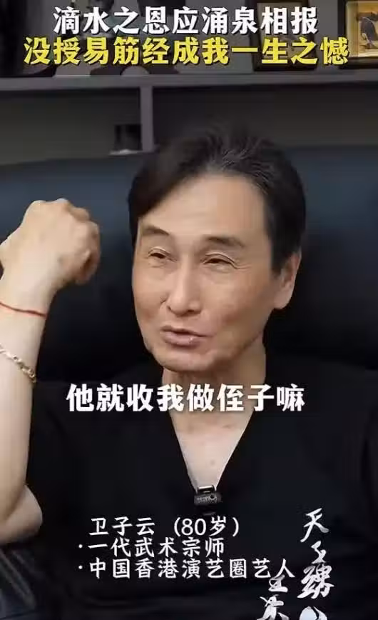 從衛子云的悼念視頻中可以得知,同為香港演藝圈的老牌演員,他與谷峰一直交情頗深,身為後輩的他將谷峰喚作「谷叔」,衛子云身為一代武術宗師,面對谷峰唯一的遺憾便是沒有將易筋經教授於他。