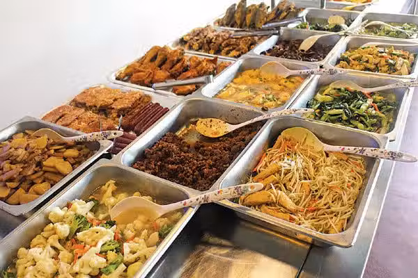 一家經濟飯店,主打口號是「100樣菜任選」,一走進去,感覺就像劉姥姥進了大觀園,眼睛都快跟不上菜色的節奏了。雖然要硬數到100樣可能有點誇張,但菜式的確比一般經濟飯店豐富好幾倍。抱著嘗鮮的心態,我打包了一尾中型炸魚、西蘭花和甜辣豬肉,沒有加飯,就純買菜那種。結帳時我還以為自己聽錯了。