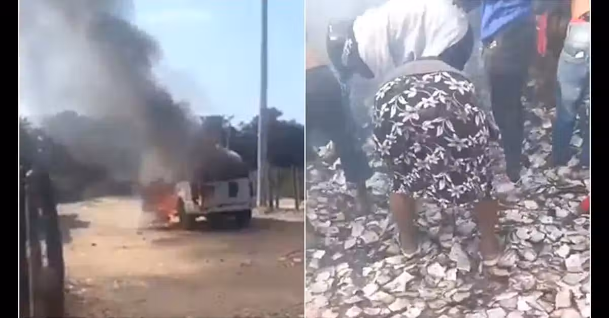 (波哥大11日綜合電)哥倫比亞發生運鈔車劫案,歹徒犯案之後,逃亡到一座小村莊,準備換車逃逸,在銷毀作案車輛時,卻讓大量鈔票撒了滿地。居民見狀,紛紛衝上前去撿拾,過程都被鏡頭拍下。