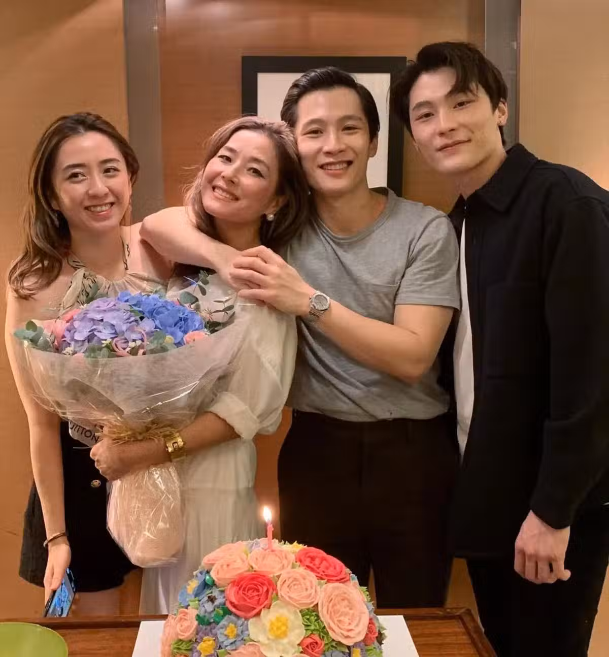 湯鎮業雙胞胎兒子30歲生日,51歲姜坤現身仍年輕優雅,湯鎮業沒來