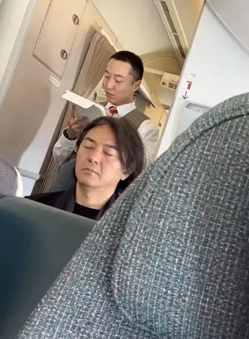 58歲鄭伊健坐飛機出行,低調坐經濟艙,臉腫頭髮少,看起來好蒼老