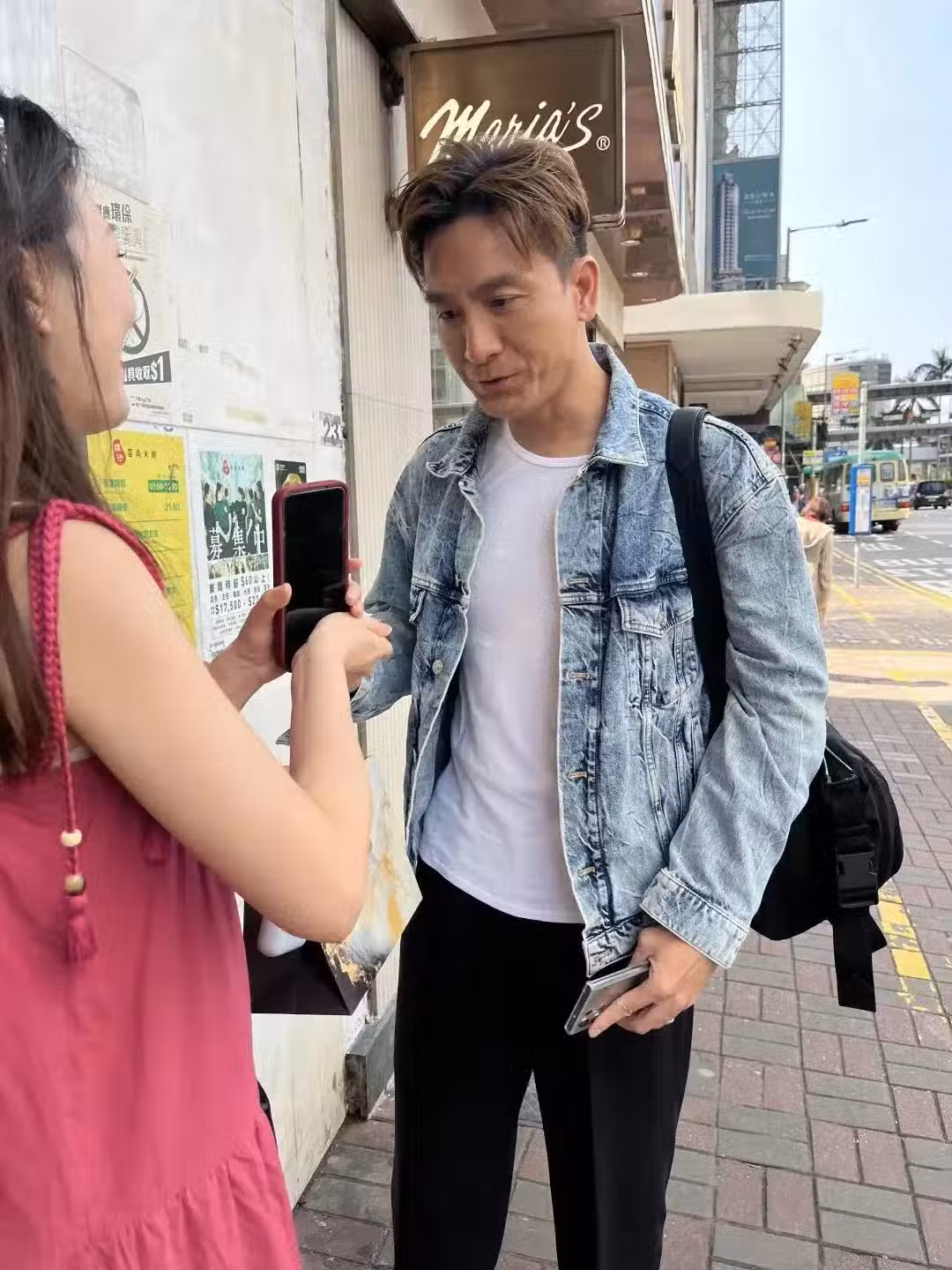 51歲馬國明在香港街頭,背著名牌包,臉上痘印多,身上沒有滄桑感