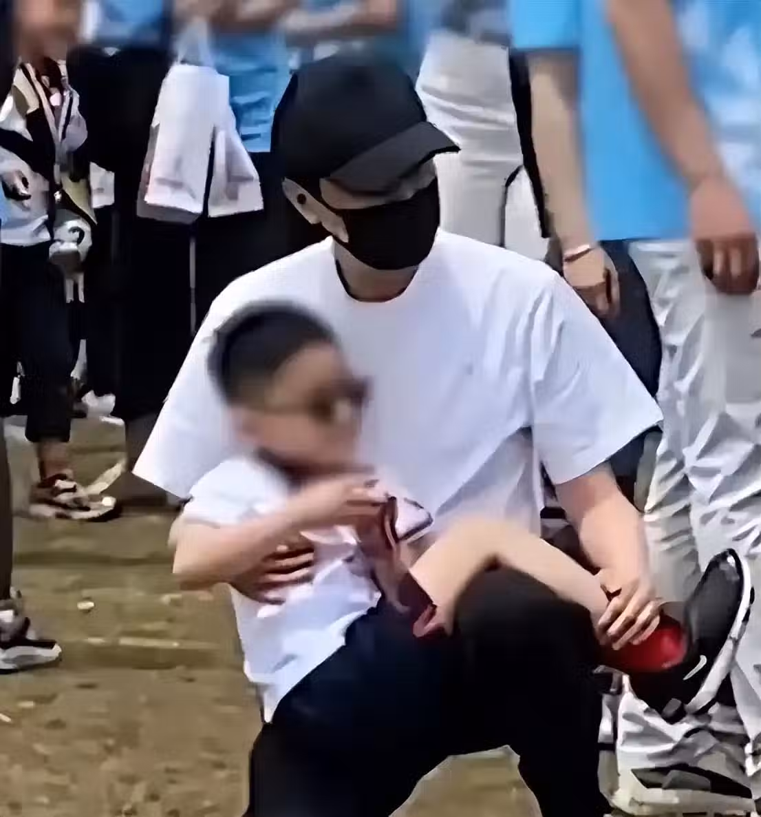 照片里5歲的小朋友個頭噌噌往上躥,都快到爸爸腰間了,小傢伙精力充沛,馮紹峰全程耐心呵護,抱抱背背不在話下。