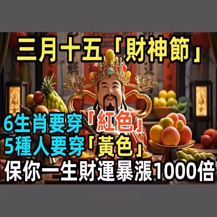 🧧 三月十五「財神節」6生肖穿紅色、5種人穿黃色!財運暴漲1000倍!