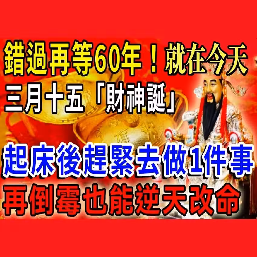 60年才有一次的大開財門日,千萬別錯過! 穿上紅色或金色衣物、拜香點燈、善念布施,只要做對了,財神就看得見你!