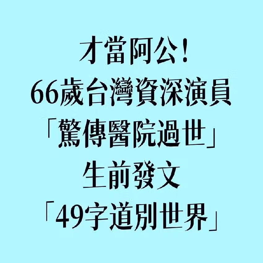 才當阿公!66歲台灣資深演員「驚傳醫院過世」...生前發文「49字道別世界」