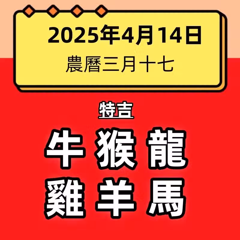 小運播報:2025年4月14日(星期一)~牛、猴、龍大吉