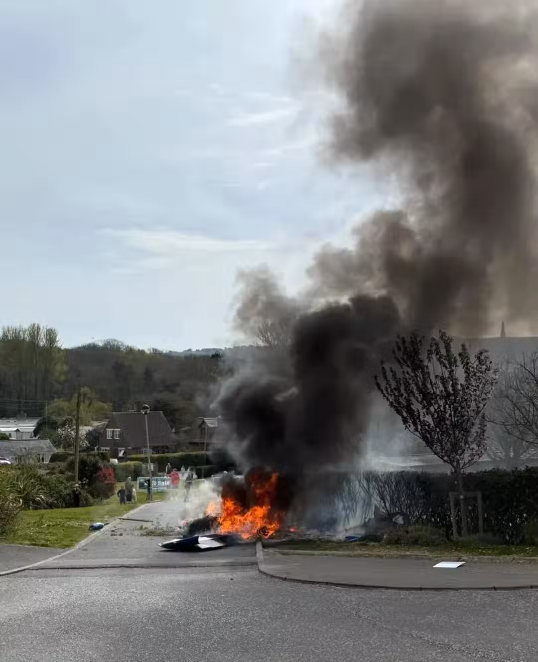 英國時間4月12日下午2:30左右,英國懷特島發生驚險一幕:一架輕型飛機突然墜毀在白崖灣度假公園(Whitecliff Bay Holiday Park),瞬間爆燃沖天火光,附近居民稱感受到強烈衝擊波並聽到巨響。