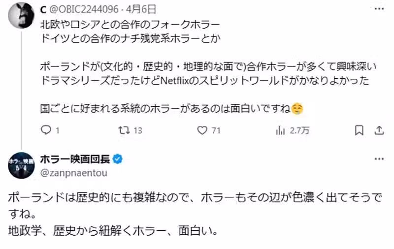 網友:「說到這個,好像很少聽到中國的恐怖片。雖然不至於說完全沒有啦。」