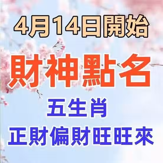 4月14日開始財神點名,正財偏財旺旺來的生肖!