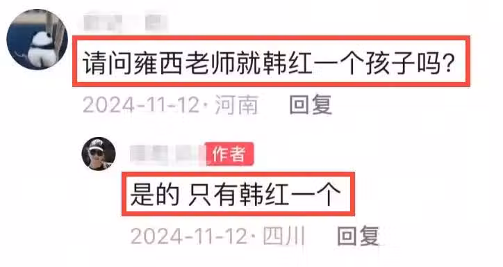 據雍西的戰友透露,雍西就韓紅一個女兒,雖然再婚了但沒有再生小孩。---------------------------------------------------