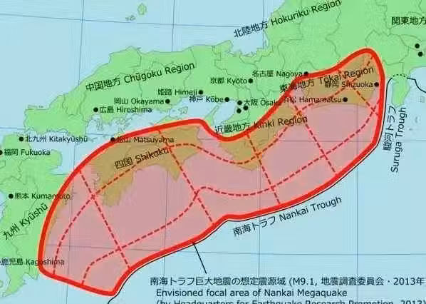 2025年3月31日,日本公布最新南海海槽大地震風險評估報告,把未來30年日本發生南海海槽大地震的幾率從70%提升至80%!