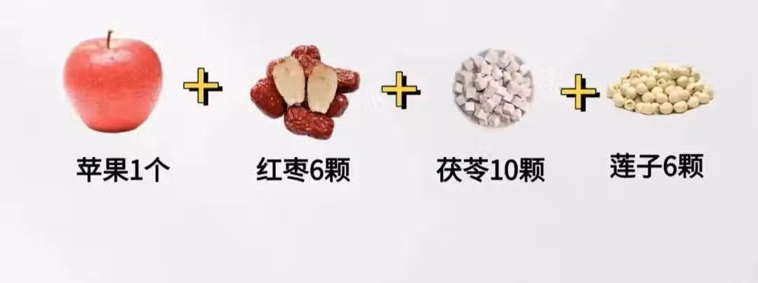 將蘋果切成小塊,茯苓、蓮子,放入養生壺中煮約20分鐘後即可(適合脾胃不好,身體濕氣重)
