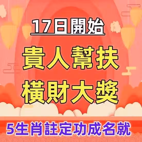 4月17日開始貴人幫扶,橫財大獎連連來,5生肖註定功成名就。
