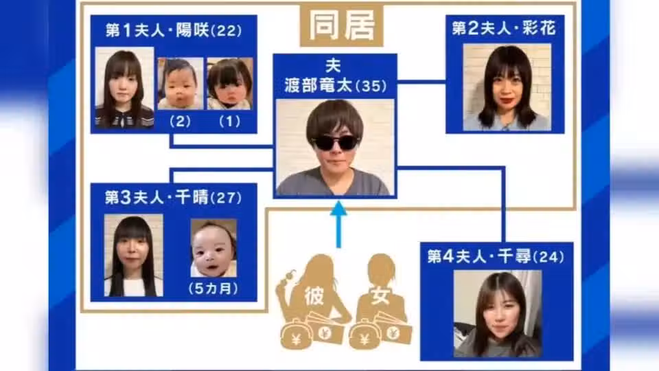 渡部龍太指出,自己平等地對待所有人,所以彼此都能和平共處,就像好友一樣,沒有任何嫌隙,4人分工合作、整理家裡的環境,自己負責打掃、陽咲下廚、千晴洗衣、彩花負責照顧孩子。他坦言,當初大家都擠在一起睡,現在妻子各自有房間,自己晚上會輪流睡。