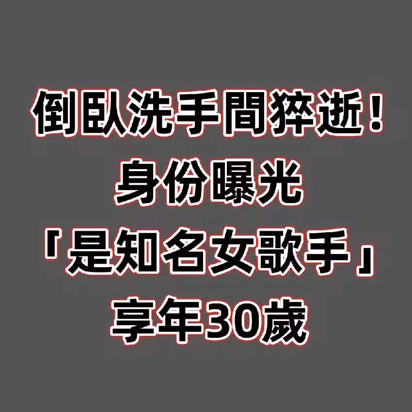 倒臥洗手間猝逝!身份曝光「是知名女歌手」享年30歲