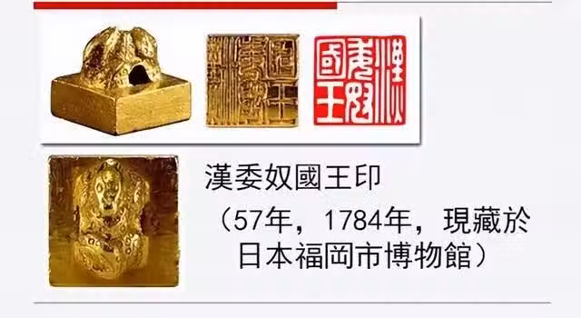 這枚印璽在1784年被日本農民於九州島志賀島出土,現今仍被視為日本國寶級文物,成為早期中日交往的實物證據。