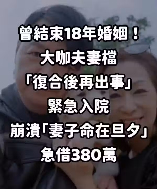 曾結束18年婚姻!大咖夫妻檔「復合後再出事」緊急入院 崩潰「妻子命在旦夕」:急借380萬