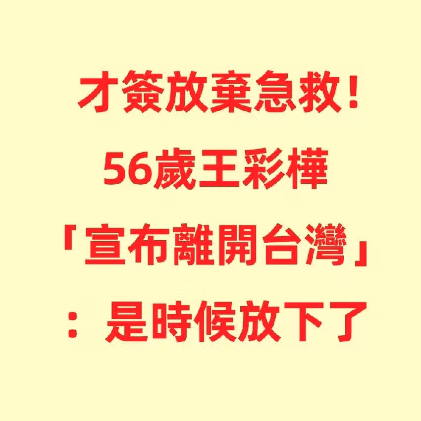 才簽放棄急救!56歲王彩樺突宣布「離開台灣」:是時候放下一切了…