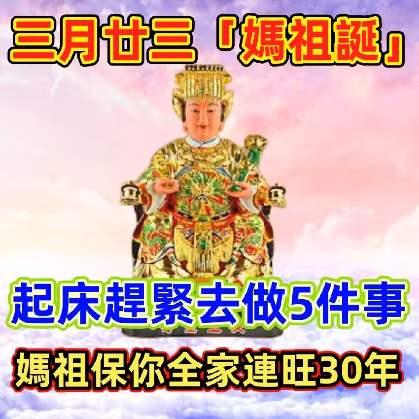 這一天是媽祖娘娘降福人間、庇佑眾生的大日子,只要你起床後做對這5件事,整個家族都能跟著旺、跟著富!