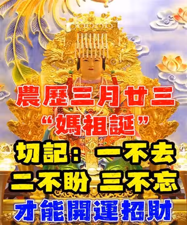 農曆三月廿三媽祖誕,切記:一不去、二不盼、三不忘、才能開運招財