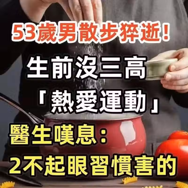 53歲男散步猝逝!生前沒三高「熱愛運動」 醫生嘆息:3不起眼習慣害的