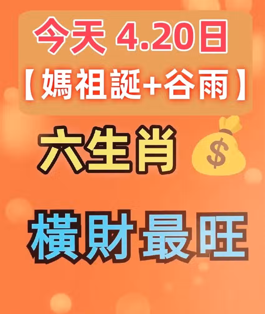 💰今天【媽祖誕+穀雨】六大生肖橫財最旺!