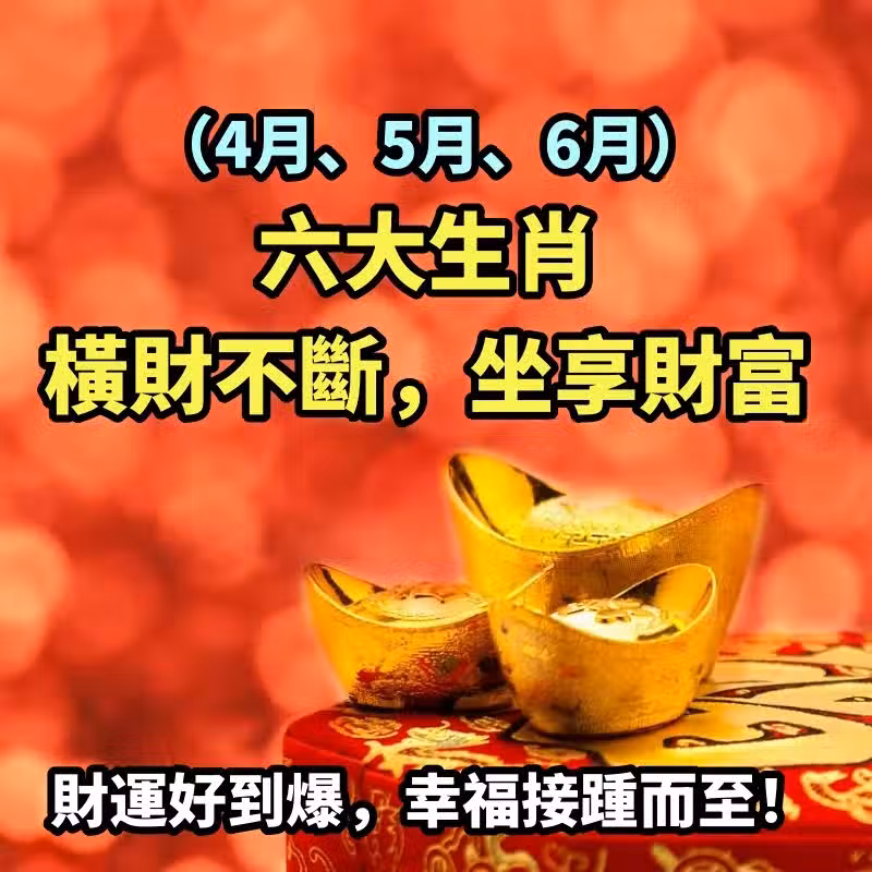 (4月、5月、6月)六大生肖橫財不斷,坐享財富!
