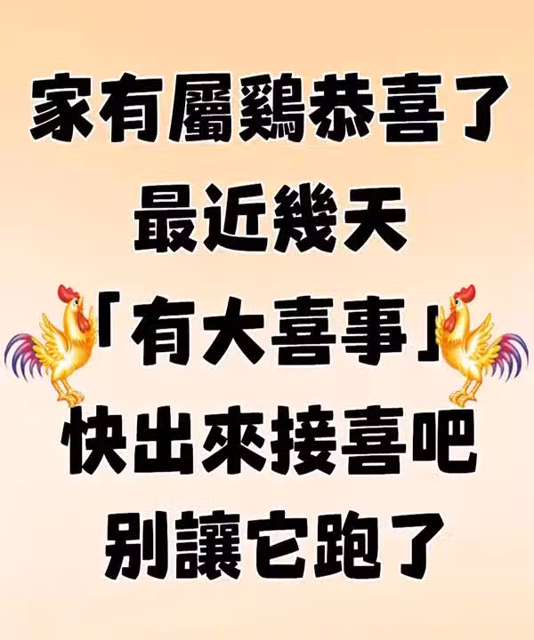 家有屬雞恭喜了!最近幾天「有大喜事」快出來接喜吧 別讓它「跑了」