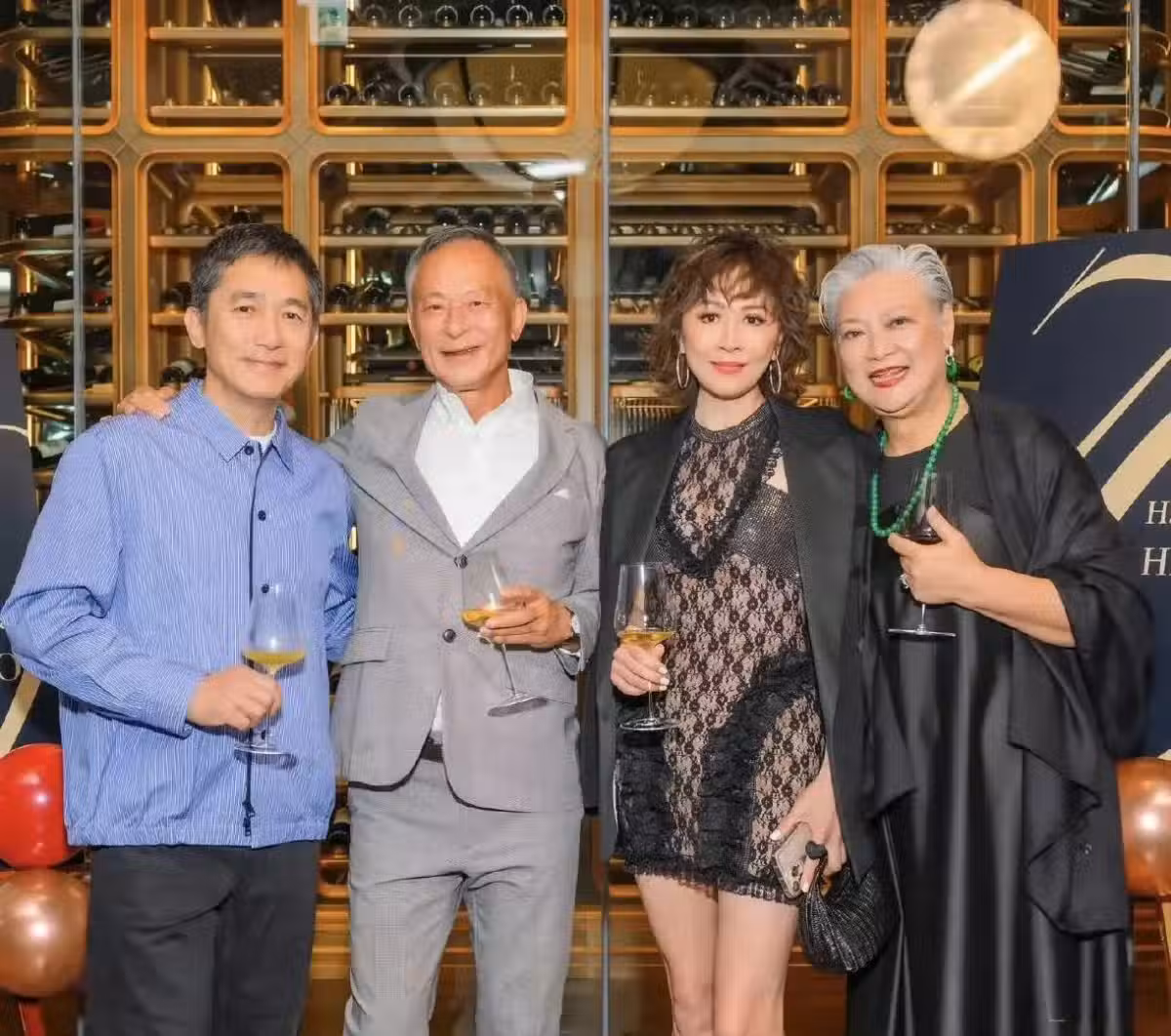 63歲梁朝偉參加派對,和周潤發同框,都有了白髮,看起來很有精神