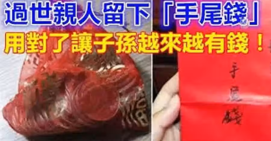 放進褲子再鎖進衣櫥:將手尾錢放在褲子的口袋裡,再把褲子捲起來,並且放進衣櫃里,意思是「鎖財庫(褲)」,據說可以用來改運。用紅布包裹放枕頭下:將手尾錢用紅布包起來,接著再用紅繩卷七圈後,打結綁起來,放進床頭櫃或枕頭下,象徵往生親人為後輩子孫「鋪財路」。放進錢包/銀行當錢母:將手尾錢放錢包內層,或放在銀行戶頭中當錢母,據說這樣可以讓「錢滾錢」、「小錢生大錢」。