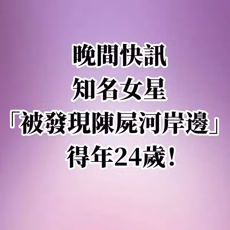 晚間快訊/知名女星「被發現陳屍河岸邊」得年24歲