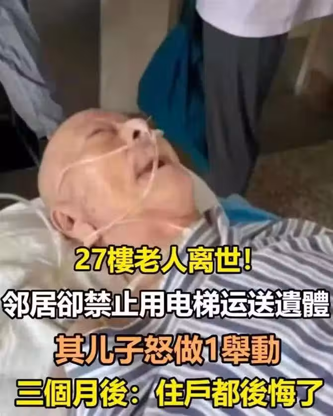 27樓老人離世! 鄰居卻禁止用電梯「運送遺體」,其兒子怒做「1舉動」三個月後:住戶都後悔了
