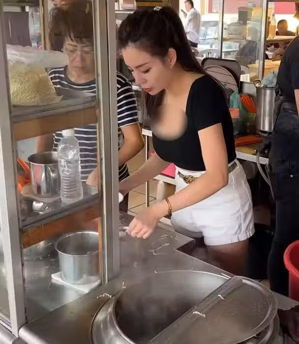 網傳照片顯示,這位女老闆在古晉一處美食中心營業,擁有引人注目的外貌和曲線身材。畫面中,她身穿黑色低胸上衣與白色弔帶背心,展現出自信與魅力,令人印象深刻。