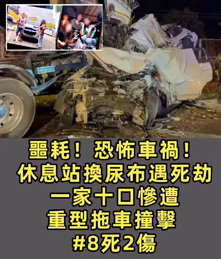 噩耗!休息站換尿布遇死劫 一家十口慘遭重型拖車撞擊 ( 8死2傷 )