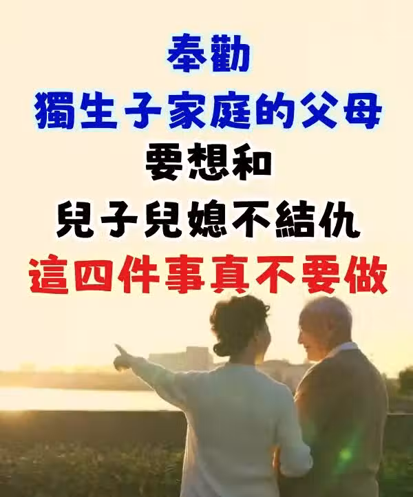 奉勸獨生子家庭的父母,要想和兒子兒媳不結仇,這四件事真不要做