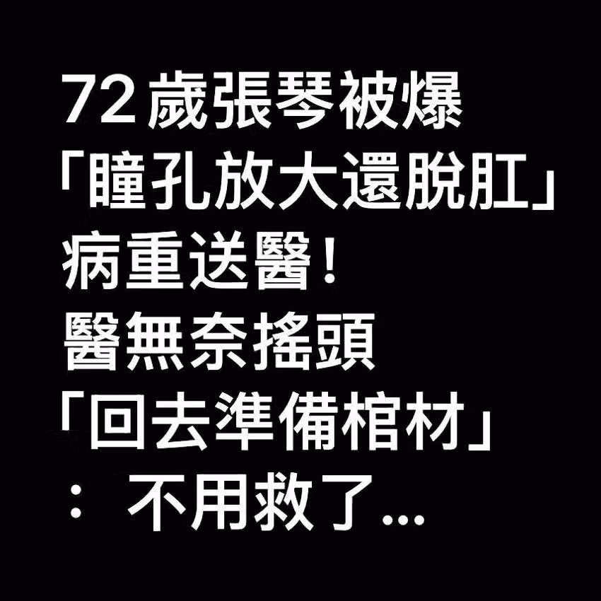 72歲張琴被爆「瞳孔放大還脫肛」病重送醫!醫無奈搖頭「回去準備棺材」:不用救了...