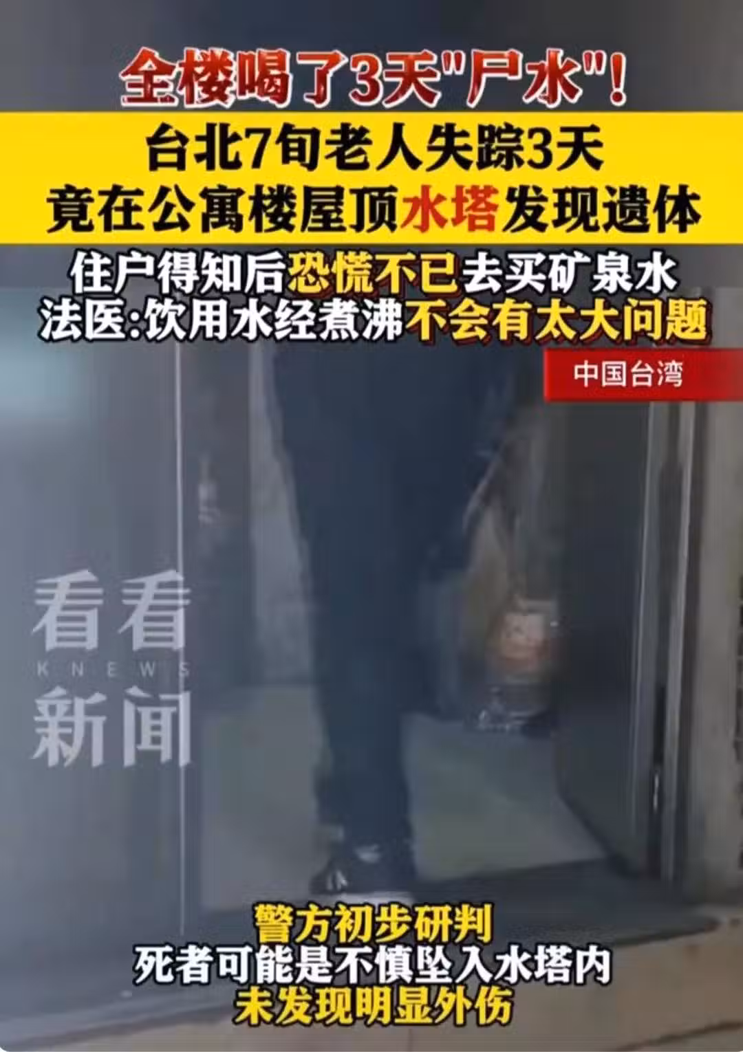 太驚悚!七旬老人泡在樓頂水塔,全樓喝3天「屍水」,法醫:煮沸喝問題不大