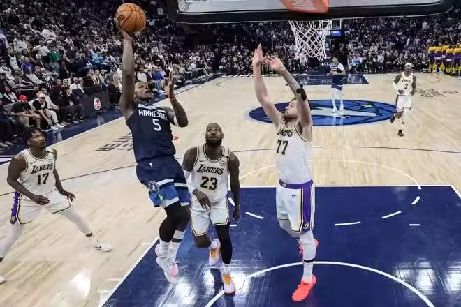 湖人擊敗森林狼那場比賽,雷迪克圍繞東契奇布置進攻戰術,全隊23次助攻,東契奇貢獻31分9次助攻,是湖人前四場比賽團隊進攻打得最出色的一場。其餘三場比賽,詹姆斯作為主要戰術發起點,東契奇有兩場比賽助攻分別為1次和2次。第四場比賽詹姆斯砍下27分12籃板8次助攻,防守端也有3個蓋帽和3次搶斷,可湖人回到在詹姆斯體系打比賽的時候,東契奇的能力無法得到充分發揮。詹姆斯持球進攻個人數據很漂亮,湖人其他球員包括東契奇在內都難以適應,高強度的對抗下也無法支撐詹姆斯打到決勝時刻。