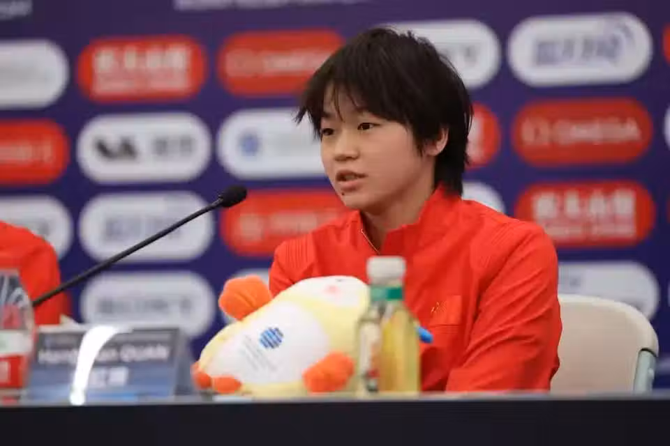 「很高興,也很興奮。在自己國家舉辦跳水世界盃總決賽,希望能儘自己最大的努力去完成比賽。」被問到第一次在「水立方」比賽的感受時,全紅嬋稱跟平常比賽沒什麼不一樣,還是希望能夠展現出自己最好的動作。